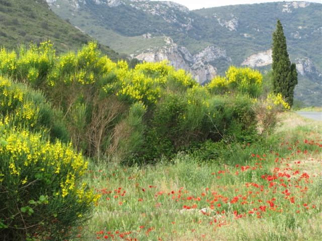 Troisième jour : de Tuchan à Duilhac sous Peyrepertuse. Beaux paysages, végétation en pleine floraison.