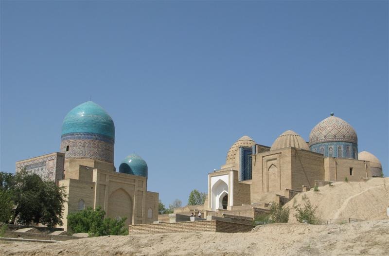 Un peu à l'écart de la ville moderne, en bordure de l'ancienne cité Afrasiab, la nécropole de Shah-i-Zinda. Elle contient une vingtaine de mausolées construits entre le 14ème et le 15ème siècle.