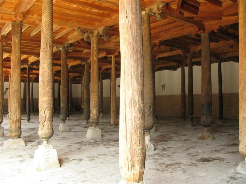 L'intérieur de la mosquée Juma, construite en 1788. Mais à Khiva, les constructions sont nettement plus récentes qu'à Samarkande ou Boukhara.