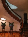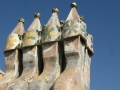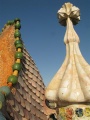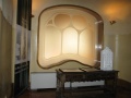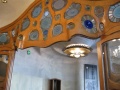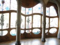 Second bâtiment extraordinaire : l'immeuble d'habitations appelé la Maison Batllo (le propriétaire qui l'a fait rénover par Gaudi). Déjà de l'extérieur cela vaut la peine. Puis la visite démarre. |  Derrière la porte d'entrée, un escalier. Là aussi, plus aucune ligne droite, tout est mouvement, presque vivant. |  Une niche avec cheminée. |  Portes de placards, de pièces. Le bois est superbe, les vitraux aussi. |