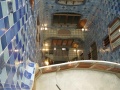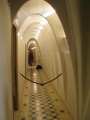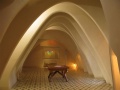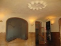 Encore des jeux de lumière. Cette baie éclaire une pièce interne. |  L'autre coté de la baie, un second salon qui donne sur la façade arrière de la maison. |  Sous les combles, une série de couloirs menant à des pièces utilitaires : buanderies, séchoirs, stockages. Entre les arches : des ouies de ventilation. |  Il paraît que c'est la marque de fabrique de Gaudi : la courbe obtenue en faisant pendre une chaîne entre deux points. Si les matheux peuvent me donner la formule (ce n'est pas une parabole, à mon avis). |