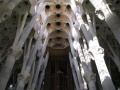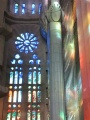 Quatre jours à Barcelone... Beaucoup d'images, de sons, de goûts, d'odeurs, et des émerveillements, devant (et à l'intérieur) des bâtiments construits par des architectes qui n'avaient pas peur du délire, il y a une centaine d'années. Le plus délirant : la Sagrada Familia, église gigantesque, toujours en travaux. C'est l'architecte Gaudi qui l'a dessinée, puis a commencé les travaux. |  Vues de l'intérieur ; pratiquement rien n'est droit. Tout est fin, on dirait de la dentelle de tissu. |  La couleur intervient également dans les sensations : jeux de lumière par les vitraux, teintes des différentes pierres utilisées. |  Vue d'ensemble de la nef. Les piliers imitent l'arbre. |