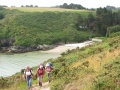 Les oiseaux ne nous quittent pas. |  Hop, une nouvelle crique à franchir. Descente... |  ... et remontée. Au début, pas de problème. |  Le petit port de Sauzon. L'eau est d'un bleu ! |