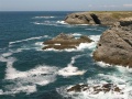Le sentier est loin d'être plat. |  L'océan, selon l'heure et l'endroit, présente toute une palette de couleurs. Pas étonnant que de nombreux peintres aient trainé dans le coin. |  Végétation typique sur roche peu fertile. Belle Ile est un bloc de gneiss. |  Pour le gîte du second soir, il faut rejoindre Bangor situé à l'intérieur des terres. Quelques kilomètres sur des petites routes, en passant par des hameaux aux petites maisons blanches. |