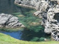 On est toujours dans cette partie sauvage, aux falaises élevées, de la côte sud. |  Falaises élevées et profondément entaillées. |  Belles couleurs également dans l'eau. |  Encore une nichée ; ceux-là semblent déja savoir ce qu'ils veulent. |
