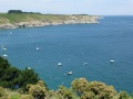 On a eu des crêpes, des crêpes et encore des crêpes. Mais bon, avec un cidre bien frais, pourquoi pas ? |  C'est le départ depuis le port du Palais. Petit vent. Cap au nord. |  Sentier vers la pointe de Taillefer. Vert en haut. |  Bleu en bas.