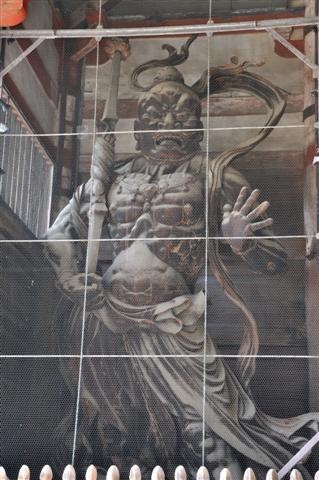 D'énormes statues gardent la porte d'entrée.