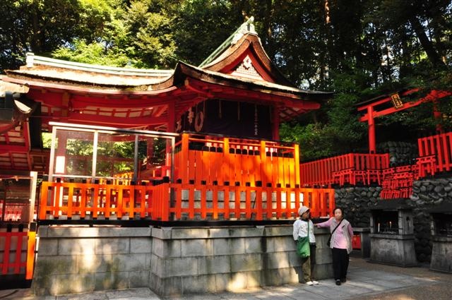Autre jour, visite à Fushimi-Hinari, sanctuaire shinto dédié à la déesse du riz et du saké. Des centaines de tori rouges (portes) et des statues de renards un peu partout. Le chemin fait au total 8 kilomètres sur la colline.
