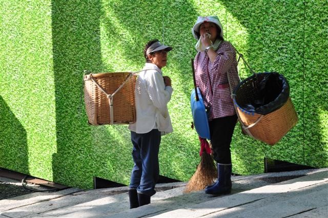 Ces dames ramassent les débris par terre (feuilles mortes, etc).